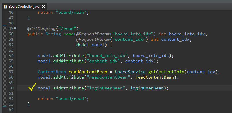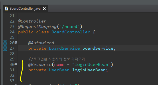 loginUserBean은 이미 주입되있으므로 따로 안만들어도 된다.
