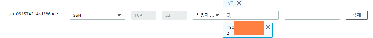 - SSH 유형의 내 IP번호로 인바운드 규칙을 추가해준다.