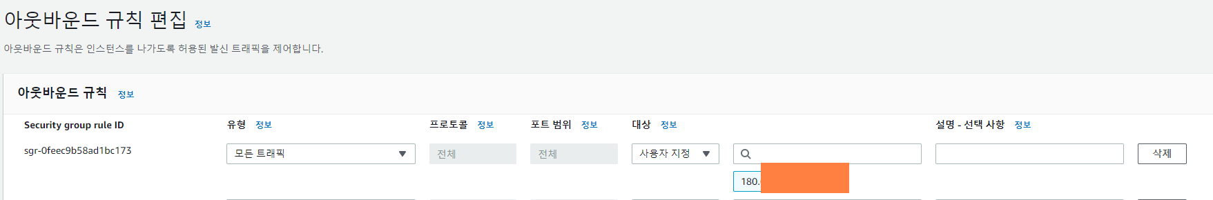 - 마찬가지로 아웃바운드 규칙에서 내 IP번호를 추가해준다.